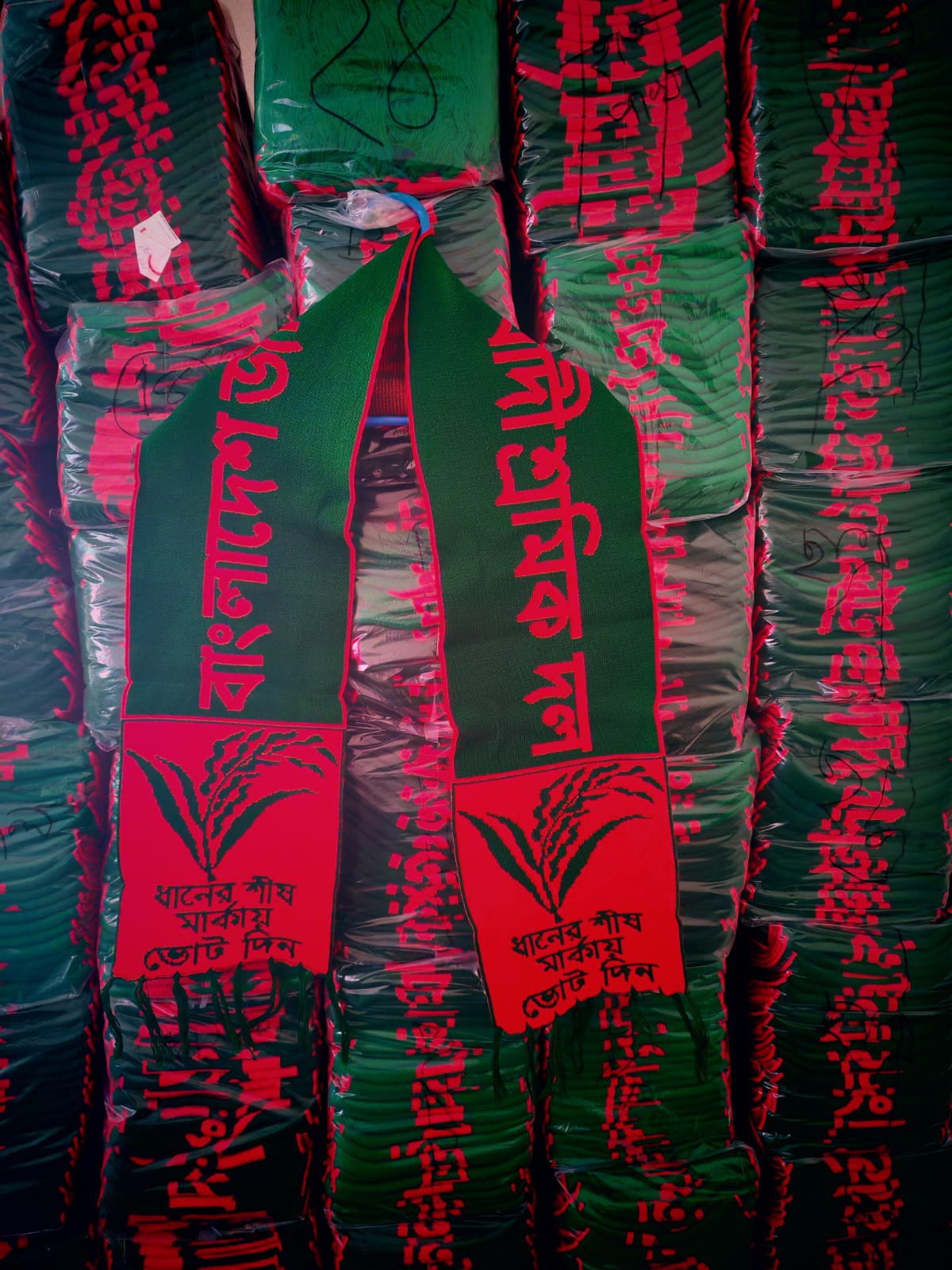আমাদের কাছে বিভিন্ন রাজনৈতিক প্রতীক ও স্লোগান সম্বলিত মাফলারের ডিজাইন রয়েছে। আপনার পছন্দের প্রতীকটি বেছে নিন: