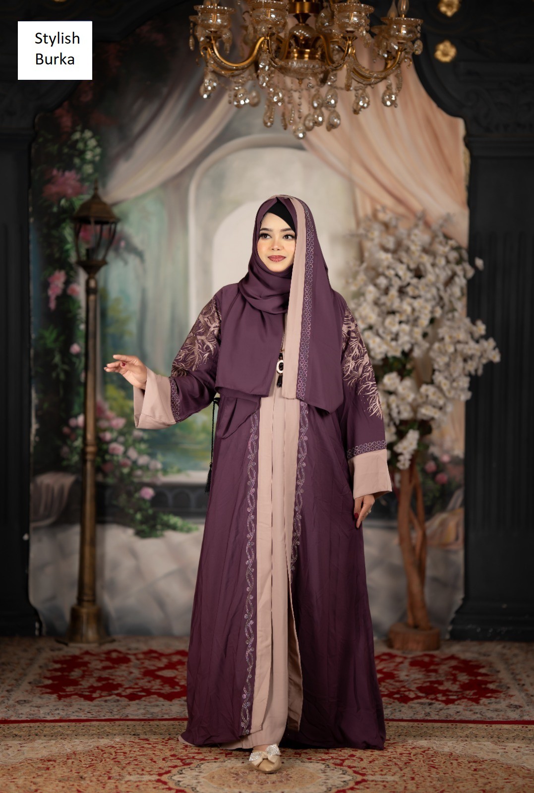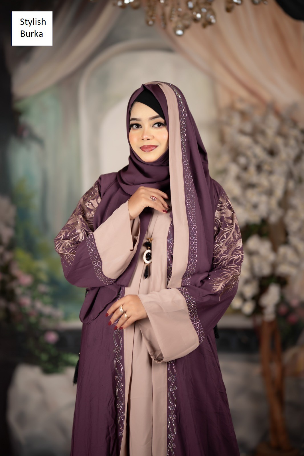 প্রিমিয়াম এমব্রয়ডারি বোরকা সেট Purple