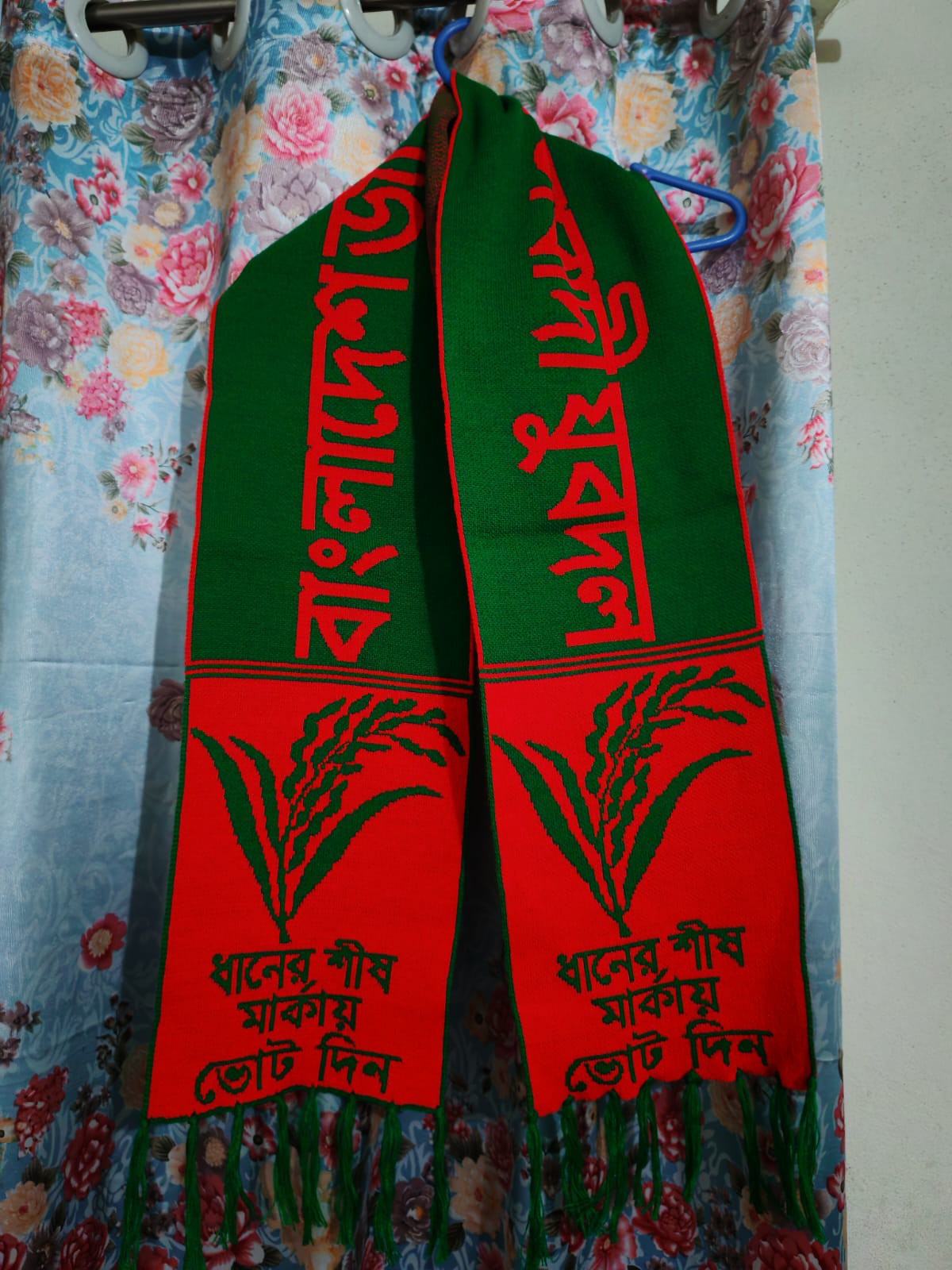 আমাদের কাছে বিভিন্ন রাজনৈতিক প্রতীক ও স্লোগান সম্বলিত মাফলারের ডিজাইন রয়েছে। আপনার পছন্দের প্রতীকটি বেছে নিন: