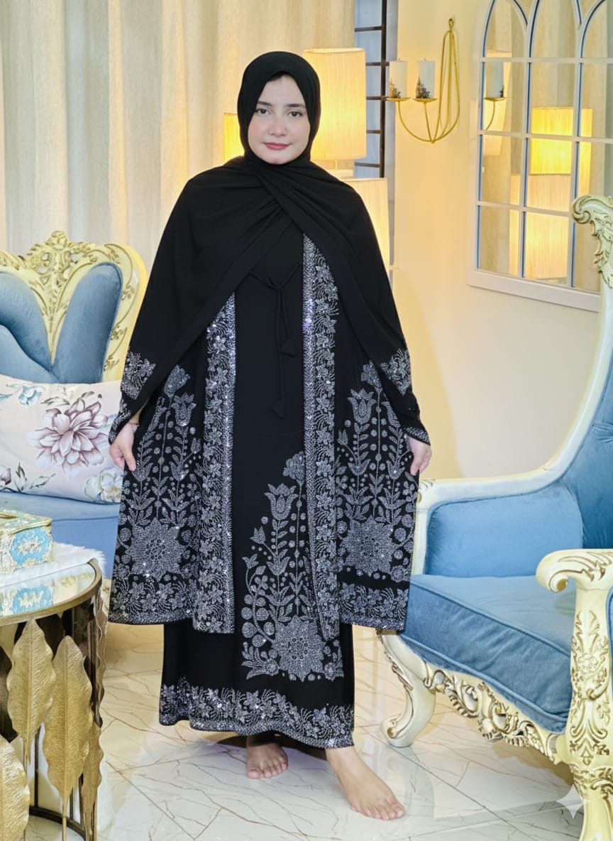 প্রিমিয়াম স্টোন বোরকা Black