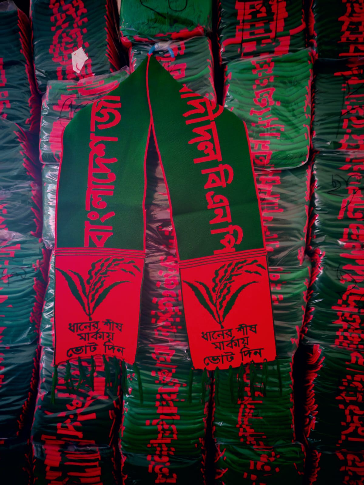 আমাদের কাছে বিভিন্ন রাজনৈতিক প্রতীক ও স্লোগান সম্বলিত মাফলারের ডিজাইন রয়েছে। আপনার পছন্দের প্রতীকটি বেছে নিন: